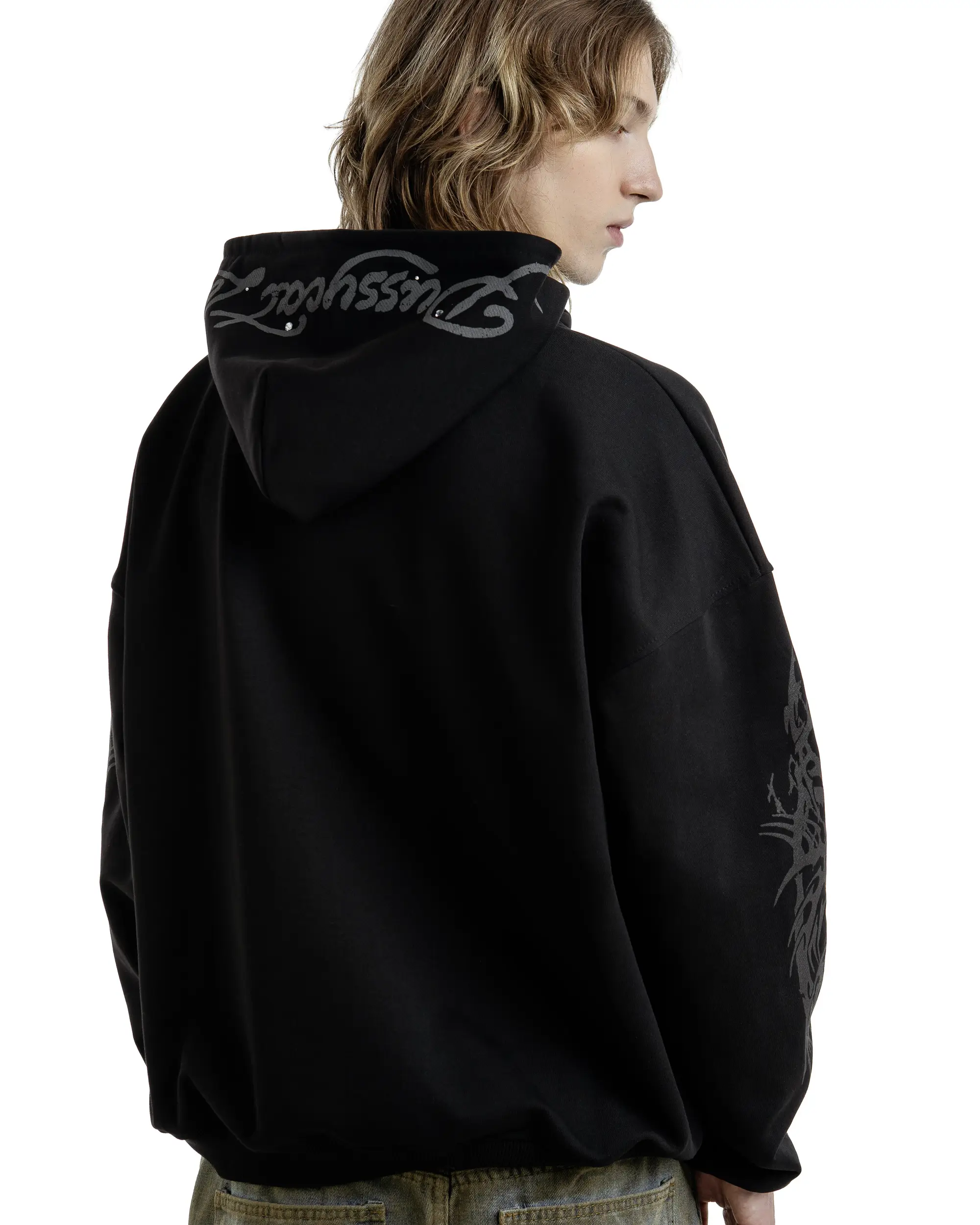 Оверсайз худи из плотного хлопка. Принт на груди украшен стразами.
